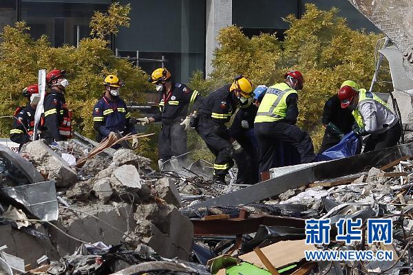2月24日,在新西兰南岛城市克赖斯特彻奇,救援人员在废墟中搜寻幸存者。新华社/路透