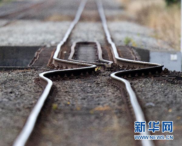2月23日,在新西兰南岛最大城市克赖斯特彻奇,一条铁轨因强烈地震发生扭曲。新华社/法新