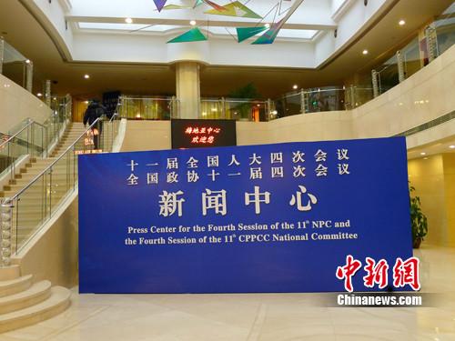 位于北京西长安街北侧梅地亚中心的十一届全国人大四次会议、全国政协十一届四次会议新闻中心26日起正式开展工作。记者 朱鹏英 摄