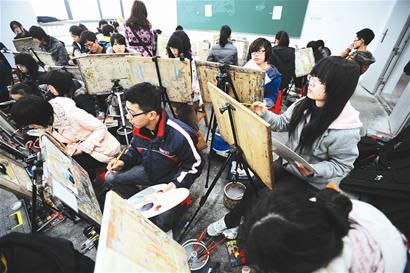 下午,走出湖美考场,看着和自己一样背着画板匆匆赶路的艺考生,王鸿宇感慨良多,“大家都希望能多报考几所学校,这样就多一些机会和希望嘛。”她说,今年准备报考8所学校的校考,考期长达两个月,湖美是自己参加考试的第3所,“明天起,我还要去参加培训设计课程,省内其他综合类大学的艺术专业要考这个课程,每年一过六月份,大家就从全省各地涌到武汉来培训了,被称为‘汉漂一族’,一漂就是大半年,有些学生连过年都没有回家。前年我是9月份才开始美术冲刺培训的,去年提前了3个月,每次都要备战到次年3月中旬。算起来,我在培训机构一共训练了14个多月呢。”