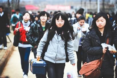 2月27日早晨7:30,湖北美术学院。飕飕冷风中,数千考生背着画板、提着画具箱,匆匆赶往考场。