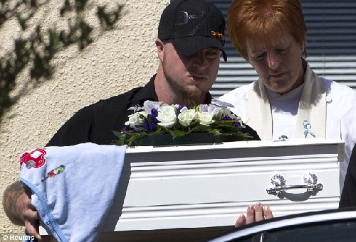 28日当天,格兰德的家人们身穿黑衣,手里拿着毛绒玩具来到克赖斯特彻奇一个小教堂,那里的一个大屏幕上播放着孩子生前的照片,背景音乐则是莎拉·麦克拉克拉(加拿大女歌手)的一曲《天使》。仪式结束后,人们小心翼翼地将一块淡蓝色毛毯盖在格兰德棺椁的一头,并在上面摆放了一束白花。