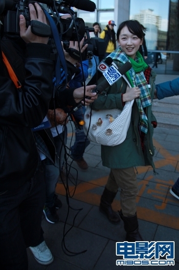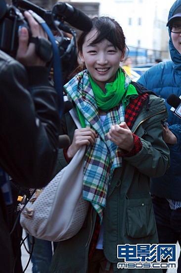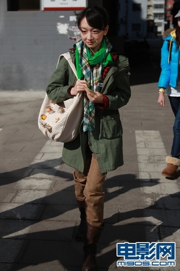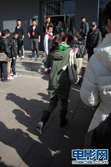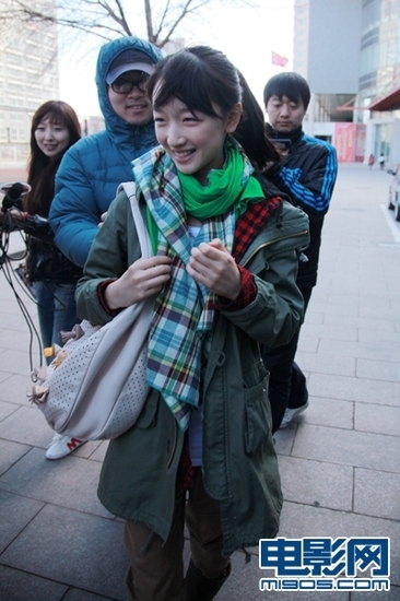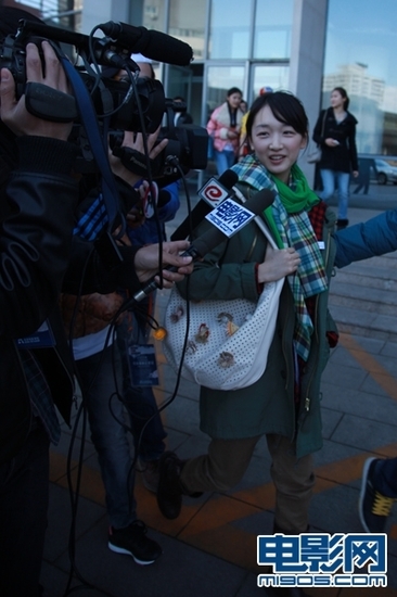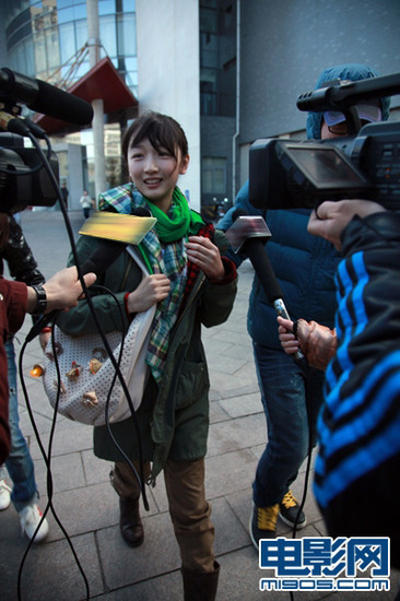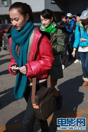 作为北电表演学院2011年本科招生中最受关注的考生,周冬雨每次亮相北电都衣着鲜艳,当天她身着草绿色外衣,戴着亮绿色围巾,明星范儿十足。不过这次她没有换包,背的还是参加三试时的那个黑白点的包。