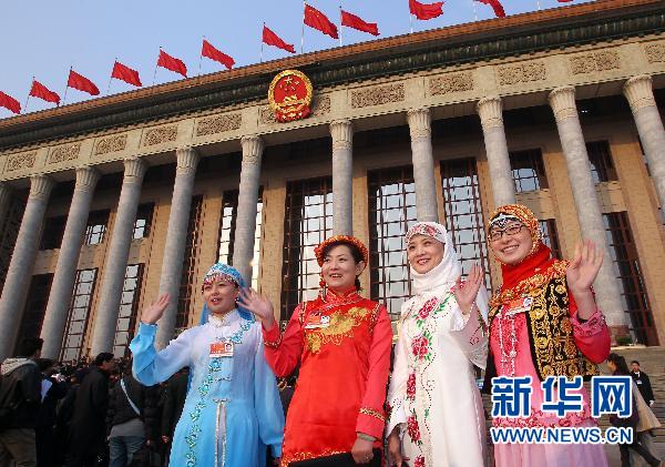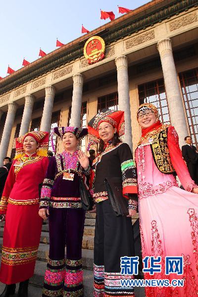 3月5日,第十一届全国人民代表大会第四次会议在北京人民大会堂开幕。这是代表在人民大会堂前合影。 新华社记者陈建力摄