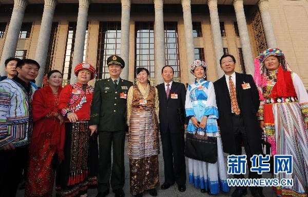 3月5日,第十一届全国人民代表大会第四次会议在北京人民大会堂开幕。这是代表在人民大会堂前合影。 新华社记者 杨宗友摄