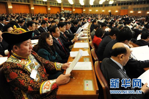 3月5日,第十一届全国人民代表大会第四次会议在北京人民大会堂开幕。这是全国人大代表在认真听会。 新华社记者 王建华摄