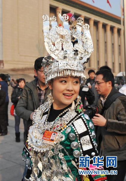 3月5日,第十一届全国人民代表大会第四次会议在北京人民大会堂开幕。这是全国人大代表雷阿幼朵抵达人民大会堂。 新华社记者张爱林摄