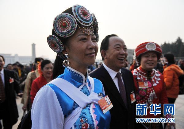 3月5日,第十一届全国人民代表大会第四次会议在北京人民大会堂开幕。这是全国人大代表抵达北京天安门广场。 新华社记者张爱林摄