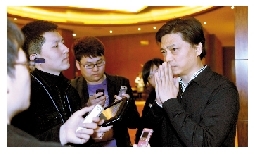 小崔被记者堵在厕所外,就引用错数据一事道歉。本组摄影 记者 胡雪柏