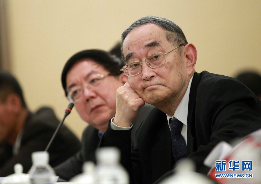 这是3月7日,全国政协委员厉以宁在分组讨论会上听取其他委员的发言。新华社记者 刘卫兵 摄