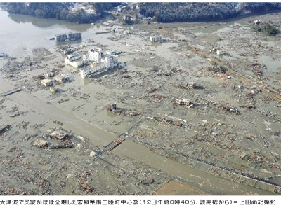 图为读卖新闻网的报道截图:被海水吞没的南三陆町