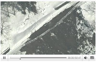 图为日本TBS网站的报道截图:地震造成路面坍塌,铁路轨道悬在空中。