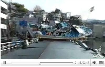 图为日本TBS网站的报道截图:船只被冲进了城市内的道路上。