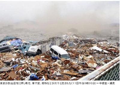 日本读卖新闻网的截图:被海水冲过的岩手县气仙沼湾。