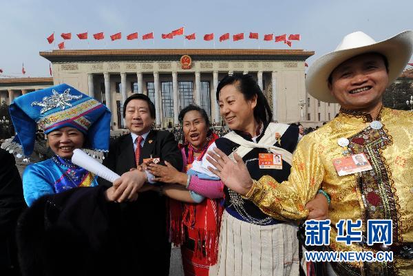 3月13日,中国人民政治协商会议第十一届全国委员会第四次会议在北京人民大会堂闭幕。这是闭幕会后,委员和工作人员步出人民大会堂。新华社记者 杨宗友摄