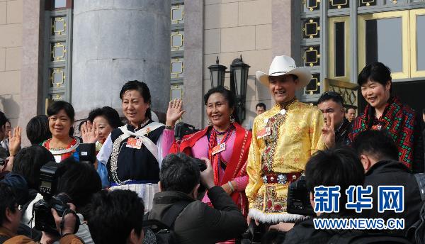 3月13日,中国人民政治协商会议第十一届全国委员会第四次会议在北京人民大会堂闭幕。这是闭幕会后,委员们步出人民大会堂。 新华社记者王建华 摄