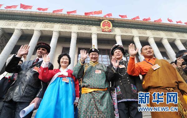 3月13日,中国人民政治协商会议第十一届全国委员会第四次会议在北京人民大会堂闭幕。这是委员们在人民大会堂前合影。 新华社记者岳月伟摄