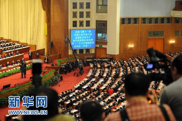 3月14日,第十一届全国人民代表大会第四次会议在北京人民大会堂举行闭幕会。 新华社记者 谢环驰摄