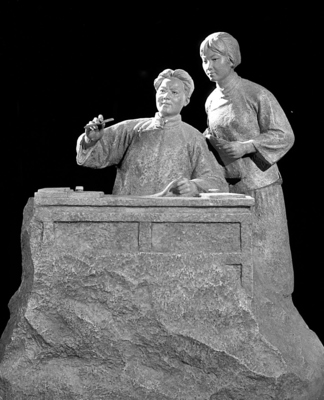 湖北省黄陂县农民集体创作的泥塑《农民运动好得很》——毛主席与杨开慧同志在武昌农民运动讲习所。新华社发(资料图片)