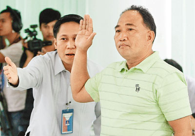 门多萨胞弟格雷戈里奥曾多次表示愿来港作供。图为其在菲作供。图片来源:香港文汇报