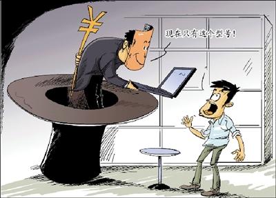 近日,记者对中关村各大卖场进行了调查,发现很多商家使用转型手段蒙骗顾客,即顾客提出购买一个型号的产品后,商家称缺货或该商品有缺陷,并极力向顾客推荐另一型号产品,顾客被忽悠买走产品后,发现买贵了或是劣质货。一些有良知的商家表示,这是惯用手段,由于各种压力,他们只能昧着良心赚“黑心钱”,不然生存艰难。