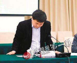 沃尔玛重庆区域经理杨国伟在约谈会上向重庆消费者致歉 重庆晚报记者 钱波 摄