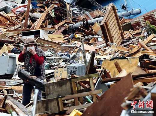 3月16日上午,一名老人在日本岩手县大船渡市“3.11日本东北大地震”引发的大海啸灾区寻找可用物品。中新社发 侯宇 摄