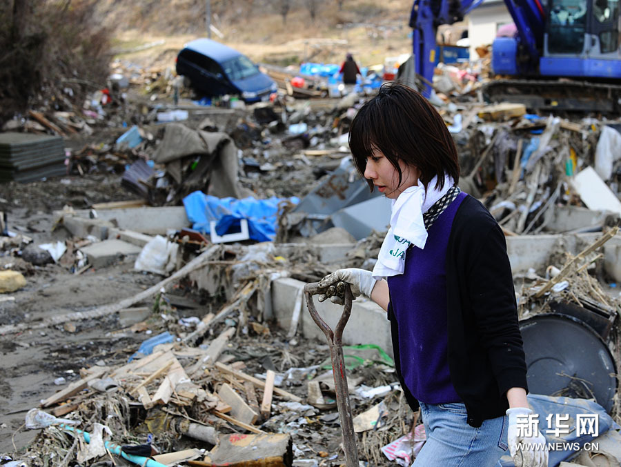 3月14日,在日本宫城县南三陆町,一位灾民在家门前清理废墟。日本宫城县南三陆町在11日强震引起的大海啸中,主要区域几乎被夷为平地。死伤、失踪者估计超过1万人。14日,记者在灾区看到,废墟前时有灾民经过,他们有的在寻找家的位置,有的从较远的损失不重的亲戚家拿来少量的水、食品,有的在整理破败的房子......他们对记者说,能活着已经是奇迹了,接着要重建家园。新华社记者 季春鹏 摄