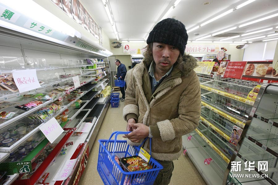 3月16日,在日本大地震重灾区岩手县大船渡市一个避难所,一名男子在一个临时营业的便利店购买食品。据日本政府16日上午的最新统计,目前,已有3000多人在3月11日发生的里氏9.0级大地震和引发的海啸中丧生,1万余人失踪,成千上万的人无家可归。新华社记者 任正来 摄
