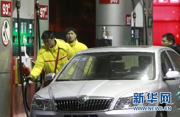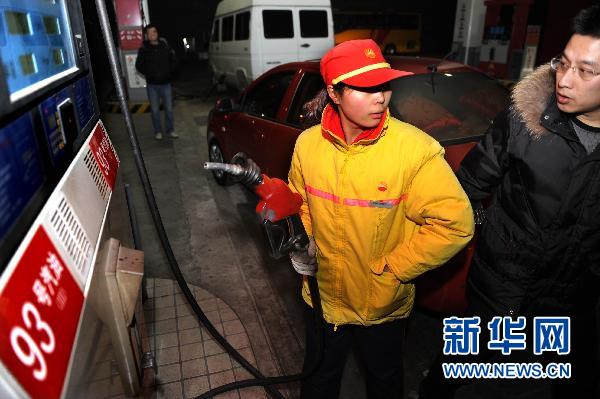 2月20日,青岛福州路一加油站职工正在为顾客加油。国家发展和改革委员会19日宣布,自20日零时起将汽油、柴油价格每吨均提高350元,相当于90号汽油全国平均零售价每升上调0.26元,0号柴油全国平均每升上调0.3元,涨幅为4.5%。新华社记者李紫恒摄