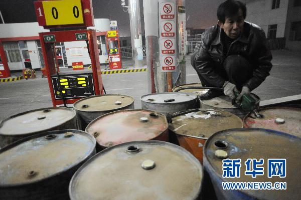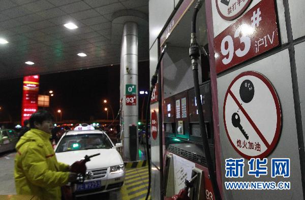 2月19日晚,上海一家加油站的工作人员正在给车辆加油。国家发展和改革委员会19日宣布,自20日零时起将汽油、柴油价格每吨均提高350元,相当于90号汽油全国平均零售价每升上调0.26元,0号柴油全国平均每升上调0.3元,涨幅为4.5%。新华社记者裴鑫摄