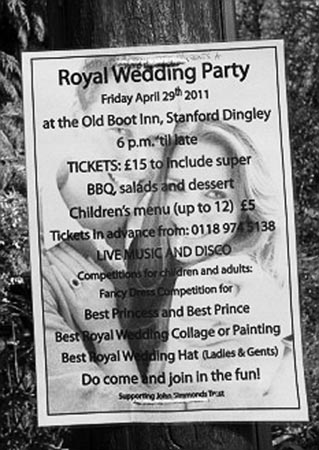 酒馆老板约翰·哈利是有幸收到王室婚礼邀请函的平民百姓之一,他经营的“老靴子酒馆”离凯特家大约5分钟车程,因此凯特一家人常光顾该酒馆。哈利计划到4月29日那天,在自己的酒馆举行一场“王室婚礼派对”,为此还特意制作了海报四处张贴,海报声明派对将提供烤肉、沙拉、音乐等,并将从参与人中评出“最佳王子”和“最佳公主”;派对只派发200张门票,每张收取15英镑。
