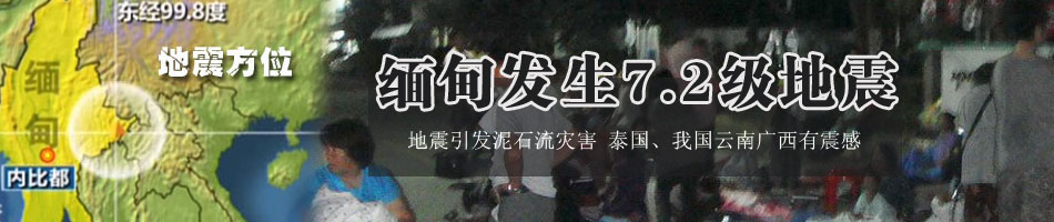 | 导读:3月24日21时55分,缅甸(北纬20.8,东经99.8)发生7.2级地震。泰国和我国的云南、广西等地有震感。据报道,地震未引发海啸警报,但引发泥石流灾害。 |