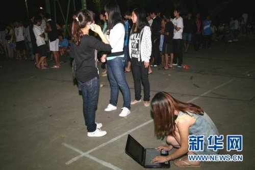 3月25日凌晨,云南西双版纳职业技术学院的学生忙着向亲友报平安。新华社发(刘世阳 摄)