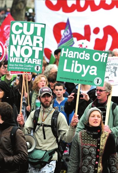 美西等国民众示威游行抗议军事干预利比亚