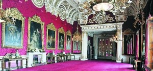 白金汉宫里的国宴厅用红丝锦缎装潢给人厚重的历史感,这也是婚礼时向外开放的19个宴客厅之一