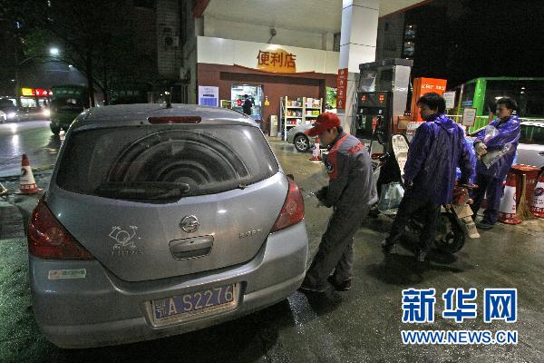 4月6日晚,在武汉汉口的一个加油站,工作人员准备为车辆加油。国家发展和改革委员会6日宣布,自7日零时起汽油、柴油零售最高限价每吨分别提高500元和400元,相当于90号汽油和0号柴油全国平均每升分别上涨0.37元和0.34元。部分车主选择在油价上涨前来到加油站加油。新华社发