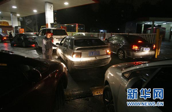 4月6日晚,武汉汉口的一个加油站挤满前来加油的车辆。国家发展和改革委员会6日宣布,自7日零时起汽油、柴油零售最高限价每吨分别提高500元和400元,相当于90号汽油和0号柴油全国平均每升分别上涨0.37元和0.34元。部分车主选择在油价上涨前来到加油站加油。新华社发