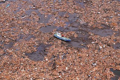 中新网4月9日电 据香港《文汇报》网站9日报道,日本3月11日大地震引发的巨型海啸将逾20万幢建筑物卷入太平洋后,大片垃圾正漂往美国西海岸。这批巨大的垃圾面积据估计相当于3个德克萨斯州。有报告称,汽车、拖车、船只和整间房屋正在太平洋公海上漂浮;有美国海洋学家甚至预测,仍然穿着鞋子的人体断肢,将于1至3年内漂至美国。
