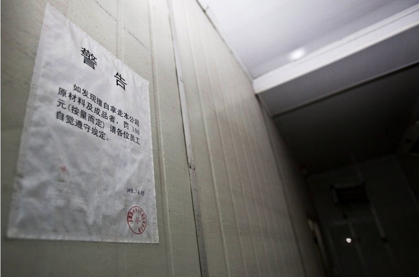 4月11日,上海宝山区南大路380弄,上海盛禄食品有限公司分公司的墙壁上贴着针对员工的工作告示。