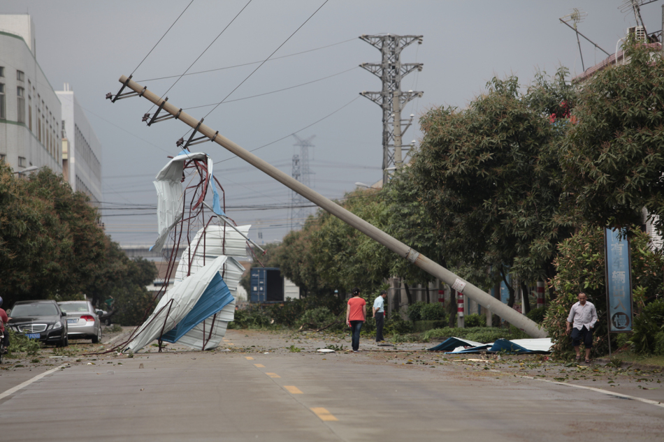 佛山一根电线杆被大风吹歪