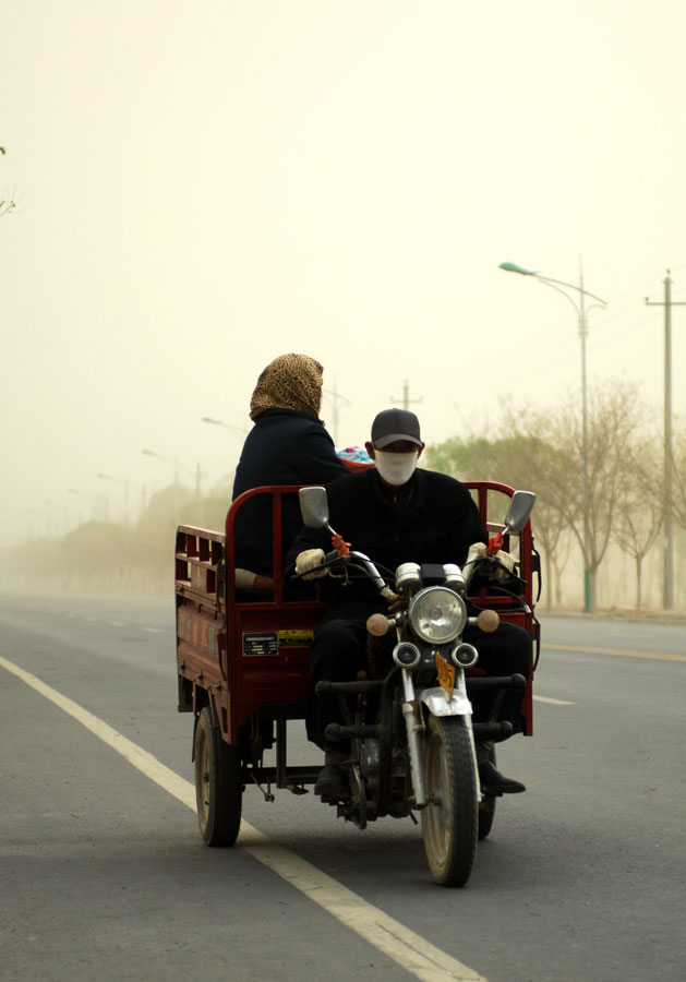 当日,甘肃省西部的敦煌、瓜州、玉门等地出现大范围扬沙天气,平均风力6级,局部风力达到8级。新华社记者 高健钧 摄