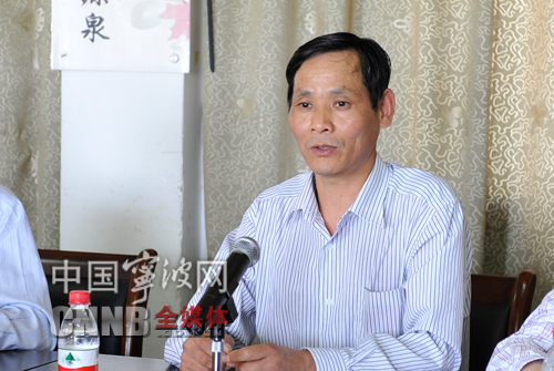 | 图为五塘新村书记、社长胡华南介绍该村和谐促进会相关情况。 |