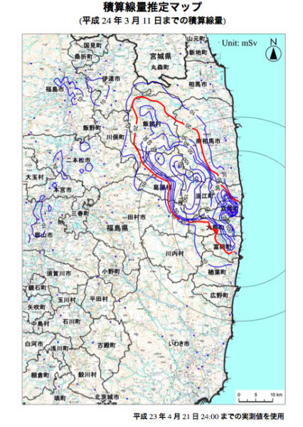 新华网东京4月26日电(记者蓝建中)由日本政府和东京电力公司组成的“事故对策统合本部”26日首次公布了根据福岛第一核电站周边辐射剂量制作的辐射剂量图。