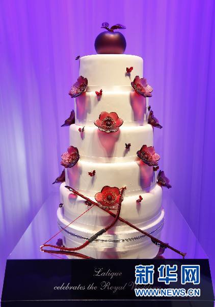 这是4月28日在英国伦敦拍摄的哈罗德百货公司展出的婚礼蛋糕。新华社发(唐诗摄)