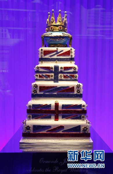 这是4月28日在英国伦敦拍摄的哈罗德百货公司展出的婚礼蛋糕。新华社发(唐诗摄)