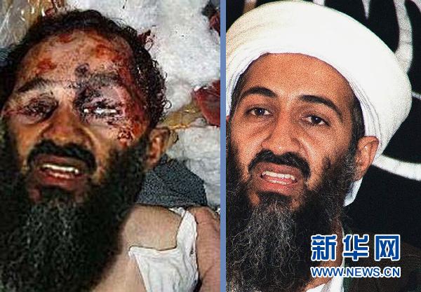 这张对比图片左半部分显示的是5月2日在网络上流传的一张照片,巴基斯坦电视机构称该照片显示的是本·拉丹被击毙后的情形。而图片的右半部分为一张未注明日期的本·拉丹资料照片。这一对比显示出,左图的脸下部和胡须很可能是通过复制粘贴把右图的一部分和一具并非本·拉丹的尸体的照片合成而得到的。美国总统奥巴马当天在白宫宣布,“基地”组织领导人本·拉丹已被美国军方击毙。 新华社/法新