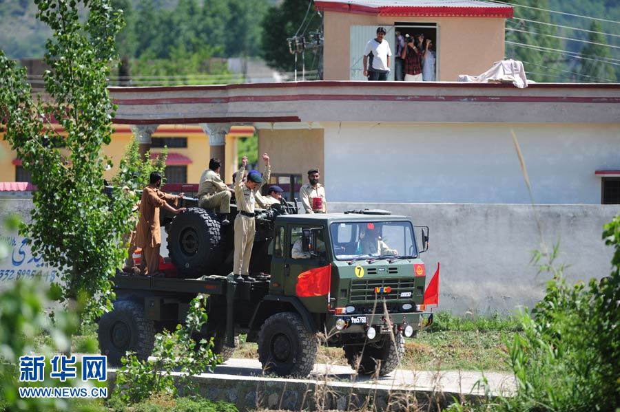 5月2日,在巴基斯坦阿伯塔巴德地区,巴基斯坦士兵从交火地点附近撤离。新华社/法新