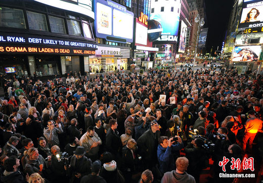 美国总统奥巴马1日晚突然召开记者会,正式宣布基地组织头目本·拉登已经死亡。在奥巴马发表演讲前后,许多美国民众已高举国旗聚集到时代广场附近,他们高呼口号,庆祝拉登之死。
