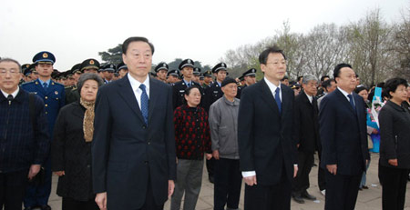 江苏省委书记罗志军(左一)、省长李学勇(左二)等省市领导参加凭吊活动。 本网记者袁涛摄
